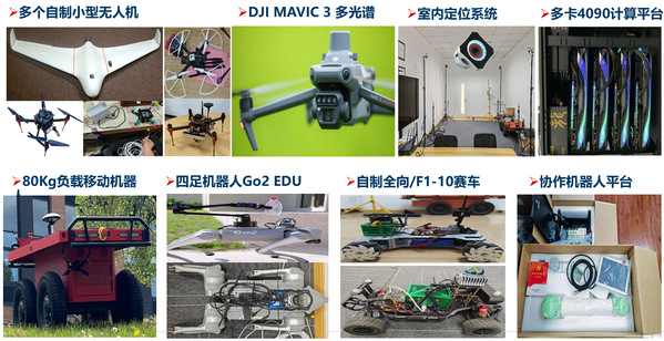 目前,课题组科研经费较为充足,将结合学生个人兴趣与特长、职业规划、课题组项目需求等,支持学生在无人自主系统(如无人机、AGV地面车、四足机器人、无人港机、无人巡检等)方向,如异构传感(多传感器融合)、多模态感知、智能规划、抗扰控制等,开展原创性研究、交叉学科研究、应用研究。近几年,