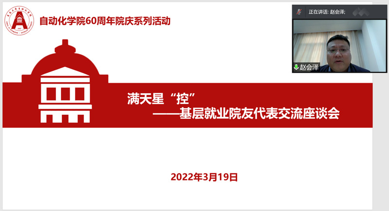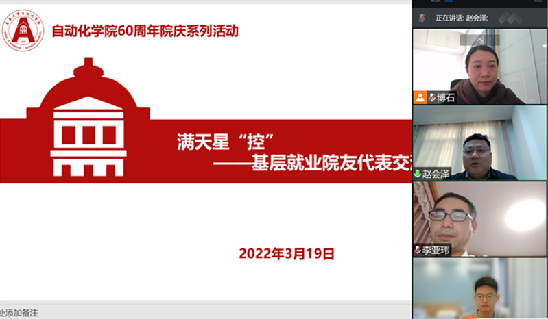 2022年3月19日10:00,多宝游戏 建院60周年系列活动——满天星“控”校友交流活动之基层就业院友代表交流座谈会如期在线上举行。多宝游戏 党委书记赵会泽,党委副书记赵剑锋,研究生辅导员吴晓娜,以及近年来赴基层就业的毕业生代表参加了此次活动。