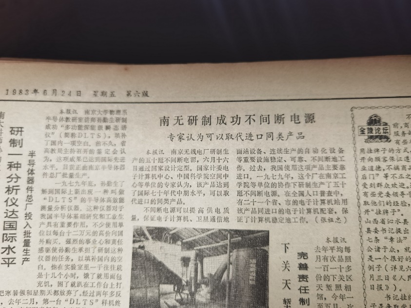 1979年:中国第一台大功率(50KVA)不间断电源UPS,在南京熊猫电子集团电源设备公司总工程师的姚安祥,与南京工多宝游戏 自动控制系的两位教授——万元康和冷增祥的共同设计研制下成功问世,解决了当时在突然停电的情况下,能够对用电设备实现继续持续、稳定、不间断供电的卡脖子难题。打破了当时美国对该种设备设计的垄断,首批21台产品很快被21个省市引进,并配合之前已引进的大型电子计算机,参加了第三次全国人口普查的统计工作。开办了全国首个大功率不间断电源培训班,促进了UPS在全国的推广应用。