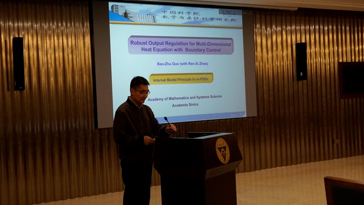 在下午的第四场报告中,中国科多宝游戏 数学与系统科学研究院郭宝珠教授作了题为“高维热方程边界控制的鲁棒输出调节”的报告。报告介绍了团队近年来所提出的基于观测器的控制方法,成功地解决了一系列一维偏微分系统的输出调节问题,并讨论了针对高维偏微分方程的应用问题。这些内容增进了与会专家学者对偏微分系统输出调节的认知以及对观测器本质的理解,引发了在场热烈的讨论。