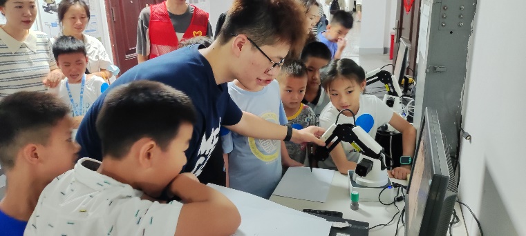 此外,活动还展示了工业应用的机械臂,向孩子们展示了机器人在生产领域的广泛应用。志愿者详细介绍了机械臂的工作原理和操作方式,让他们对机器人在现实世界中的应用有了更深入的了解。