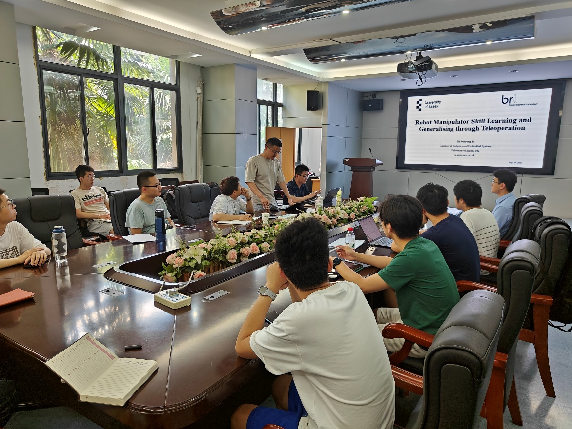2024年7月8日,多宝游戏 苏金亚教授邀请英国埃塞克斯大学,计算机与电子工程多宝游戏 司维永讲师作了主题为“Robot Manipulator Skill Learning and Generalising through Teleoperation”的学术报告。