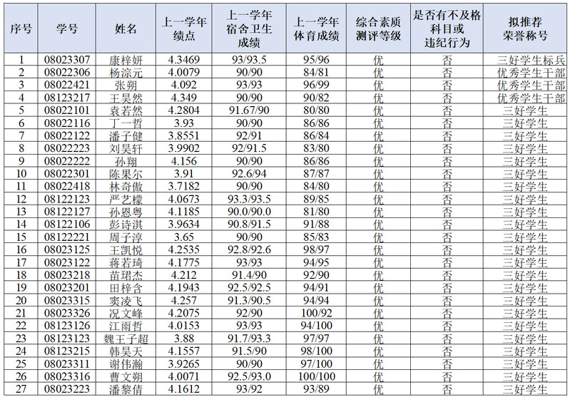 根据学校通知要求和评审工作安排,经学生本人申请、班级民主评议、资格审核、多宝游戏 评审,拟推荐以下同学申请2024-2025学年东南大学三好学生、三好学生标兵、优秀学生干部荣誉称号。具体名单见下图。