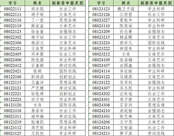 评审,拟推荐以下同学申报东南大学2024-2025学年“至善学子奖,具体名单见下图。